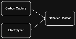 The Sabatier reactor takes the fed in carbon dioxide and hydrogen gas, then combines them in appropriate ratios,
